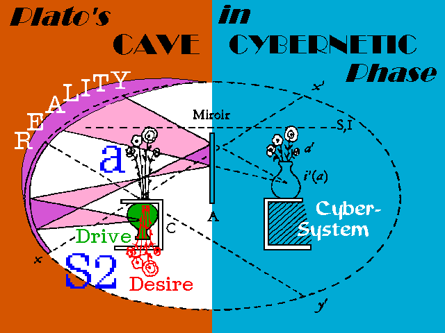 Since Artificial Memory (i.e. Cybernetics) operates on Earth, PLAN applies the Art of Memory in the state of Democracy (e.g. Republic+Cybernetics). In other words, it addresses the split of modern subjectivity (drive/desire) in a 'Cave' whose inner face - following Plato's - dysplays the projected Reality from Cybernetics.