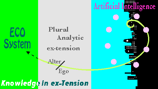 l'ardonner à la dynamique d'un écosystème. Ces topologies, diagrammes et modèles, ne sont pas mon invention - elles ont été graduellement élaborées au vingtième siècle par : S.Freud, J.P.Sartre, R.D.Laing, J.Lacan et d'autres. Ma contribution est l'identification de ce sas/média à la psychanalyse distincte de sa seule intention. Pour la reconnaître, on peut dénommer cette psychanalyse en extension : ANalyse PLurielle - qui s'est définie comme l'antique Tradition d'Art de Mémoire mise au jour et adaptée à l'Ère Informatique. J'ai décrit cet Art de Mémoire en ses formes anciennes et modernes dans plusieurs pages Web, actuellement au titre du PLAN (PLurient ANalytique). Pour être précis, ma contribution démontre que l'Art de processus de Mémoire ne peut s'accomplir sans instrument. Sa méthode seule ne suffit pas. C'est ce que Platon - prenant acte de la fin de Socrate - a indiqué quand l'Art de la Mémoire était parallèlement divulgué par Simonides ; la République avortait faute d'un certain facteur, nécessaire à communauté pour naître en Démocratie. Cet instrument grée son chaos industriel avant et à fin de son écologisation. Je suppose que notre sémiologie actuelle montre que cet outil est l'Intelligence artificielle (voir : logique du zéro et du chiffrage). À ce point un aphorisme peut être compréhensible et utile pour tracer notre compréhension : l'Intelligence Artificielle est ce qui introduit le Chaos dans la Production de Perte Absolue. Et aussi : L'intelligence artificielle (des Réseaux Informatiques contemporains - par exemple) et l'Analyse Plurielle sont les deux conditions synchrones pour l'acceptation du chaos avec sa transmutation. Et nous pouvons concevoir des mesures pratiques : |